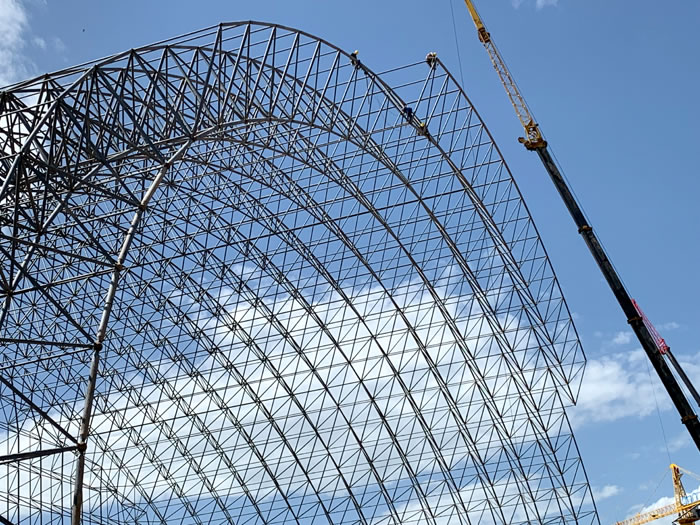 (2)网架加工前应对现场尺寸进行复测,确认无误后方可进行加工、安装;网架制作、运输、安装应遵守《空间网格结构技术规程》JGJ7-2010、《钢网架清镇螺栓球节点》JG/T 10-2009、《钢网架清镇螺栓球节点用高强度螺栓》 GB/T 16939-2016、《清镇钢结构清镇工程清镇施工规范》 GB50755-2012、《清镇钢结构清镇工程清镇施工质量验收标准》 GB50205-2020。
